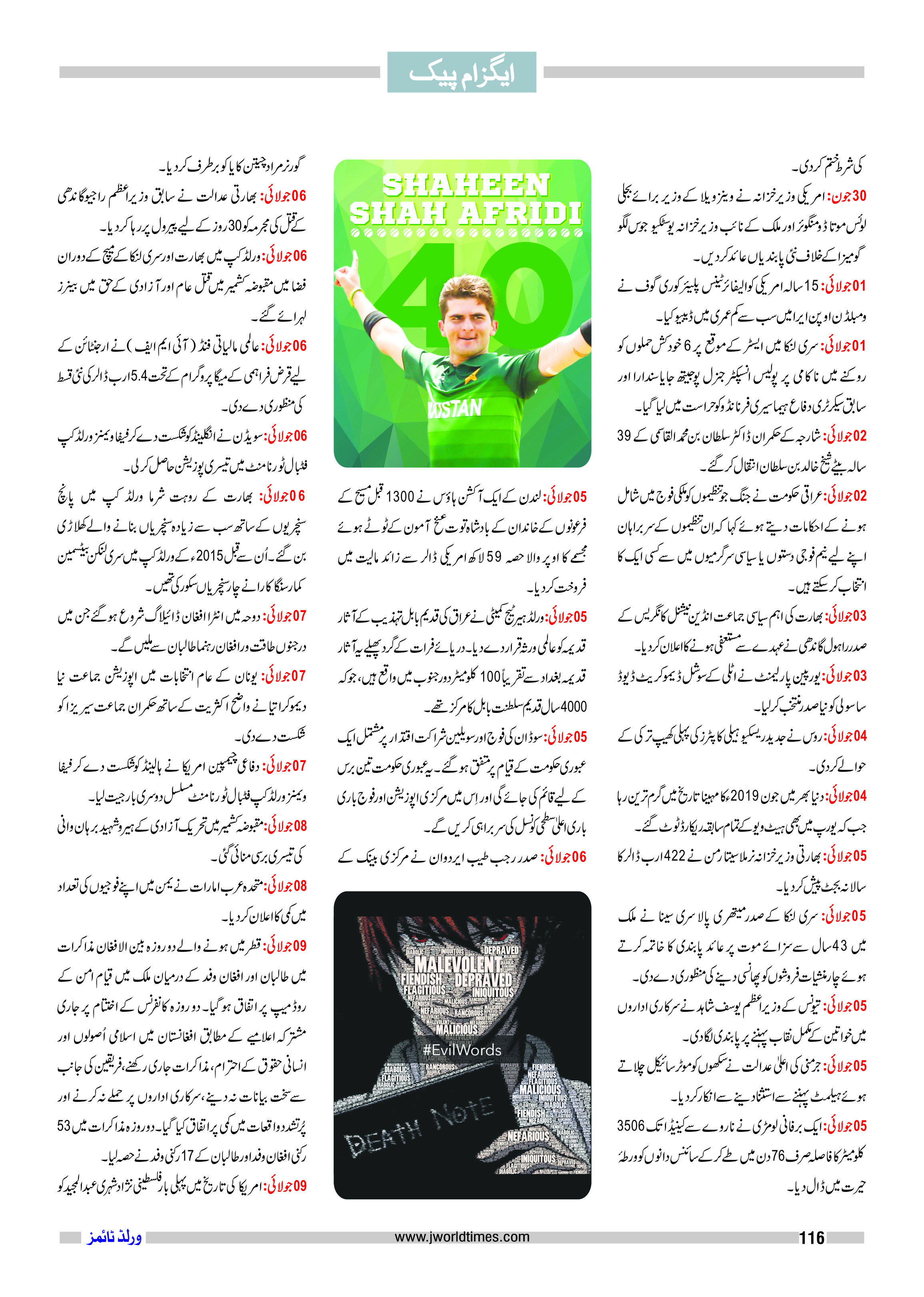 Jahangir’s World Times Urdu, August 2019 (116) November 12, 2019 JWT Urdu, JWT Urdu | 2019, JWT Urdu | August 2019 Leave a comment For Annual Subscription & online order Please Contact at 0302 555 68 02