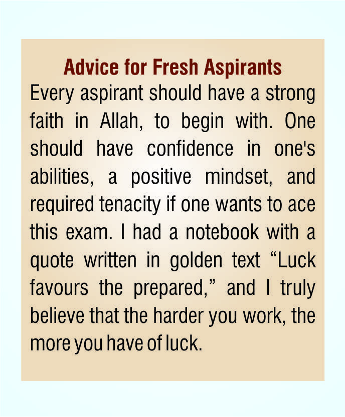 SHD: My success hasn’t been possible without countless blessings of Almighty Allah. Then, the credit for it goes to my family, especially my father who always had my back. My father had an unflinching belief in my abilities and always helped me cope with initial failures. Without his support, I wouldn’t have been here. I also owe my success to my mentors and teachers who helped me ace this exam.