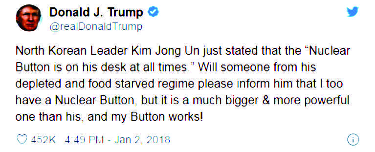 The most recent example is the escalation in the use of hostile language between Trump and North Korea’s Kim Jong-un. North Korea unilaterally withdrew from the Treaty on the Non-Proliferation of Nuclear Weapons (NPT) in January 2003. In September 2017, it conducted a test of what it claimed was a thermonuclear weapon after which it threatened the United States. On Jan 2018, US President Donald Trump also threatened NK of a nuclear war.