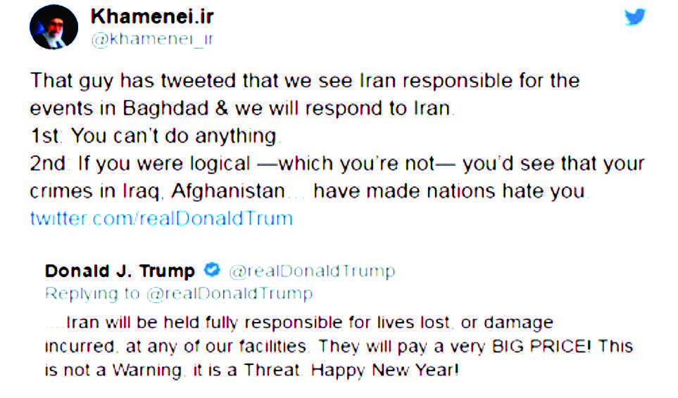 Iran’s supreme leader, Ayatollah Khamenei, responded a day later, tweeting, “You can’t do anything.”