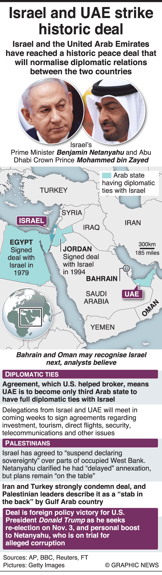 Like many other flabbergasting happenings in international arena such as US-Iran clashes after the killing of Qassem Soleimani, hyper politics between China and the United States over Covid-19, etc., the year 2020 brought a new twist in international relations. The event that has re-ordered the Middle East diplomacy is an astonishingly unholy US-brokered deal which was signed between the United Arab Emirates (UAE) and Israel. The UAE has become the third country to have full normalization of relations with Israel, after Egypt and Jordan in 1979 and 1994, respectively.